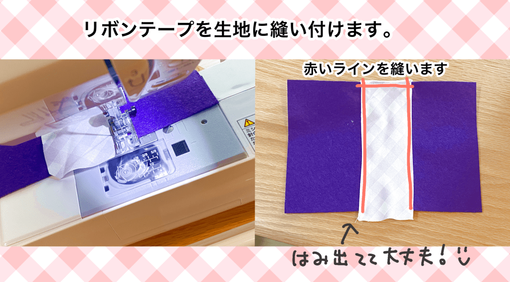 2、リボンテープの縫い付け