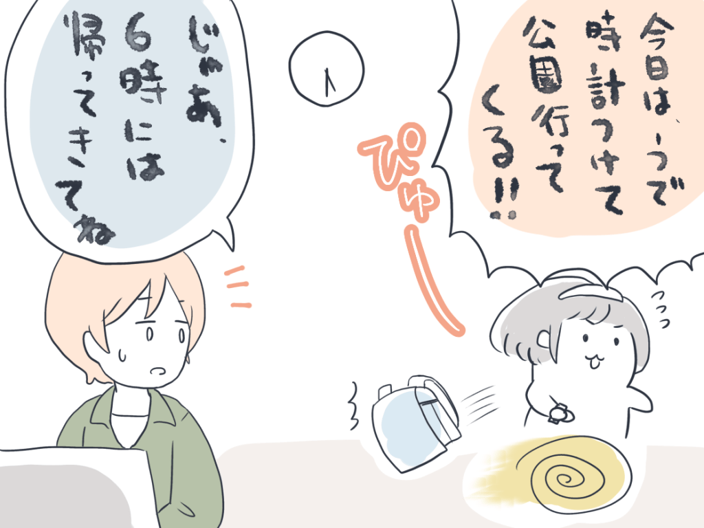 その日は平日で私はまだ仕事中だったので、「6時には帰ってきてね」と声をかけてお見送り。
