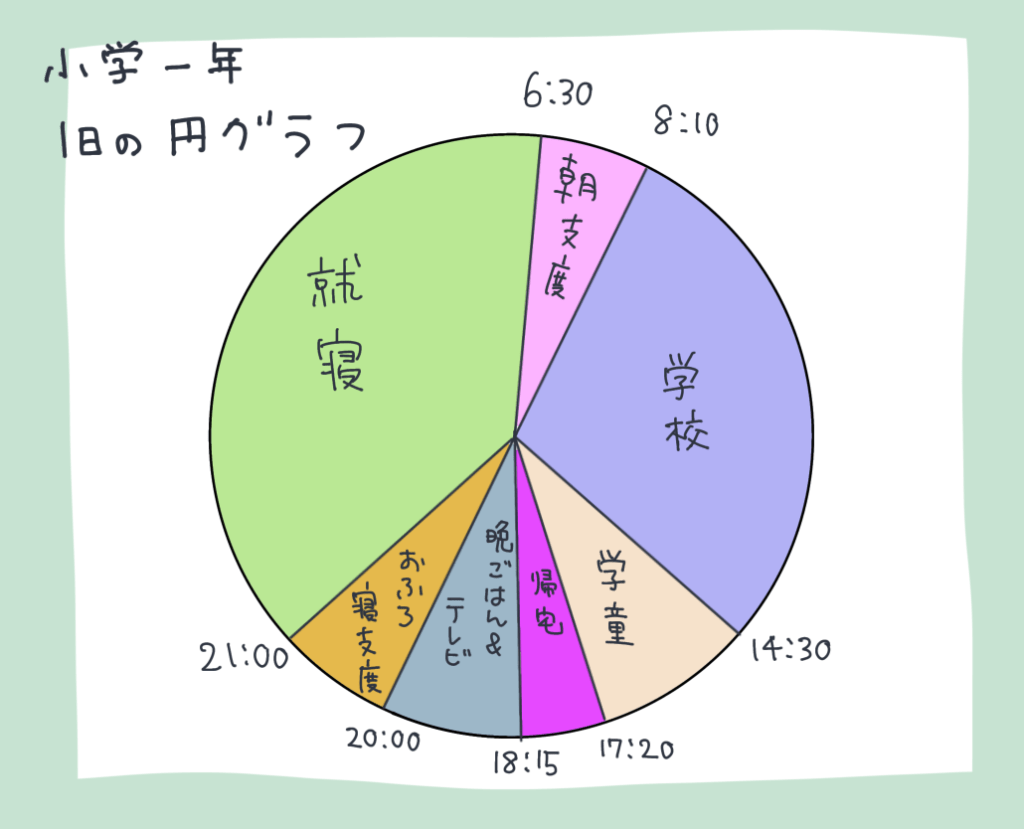 保育園時代と比べても起きる時間・寝る時間・帰ってくる時間は大きく変わっていません。