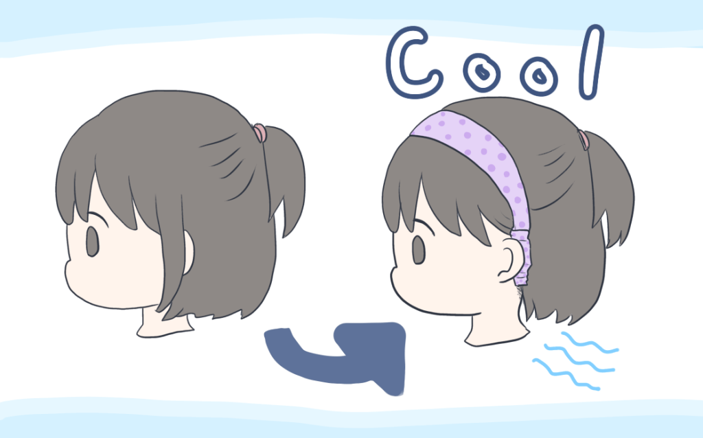 ヘアバンドにすると、耳も首元もスッキリ出るので、とっても涼しげですよね✨
