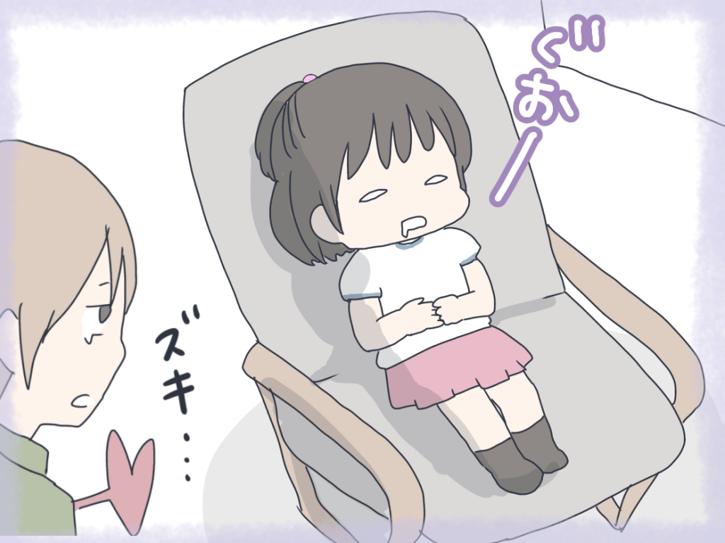 娘も最初のうちは学童から帰ってきて晩御飯を待つ間、ソファでテレビを見ているうちに電池が切れてスヤスヤ💤 ということが何度も。