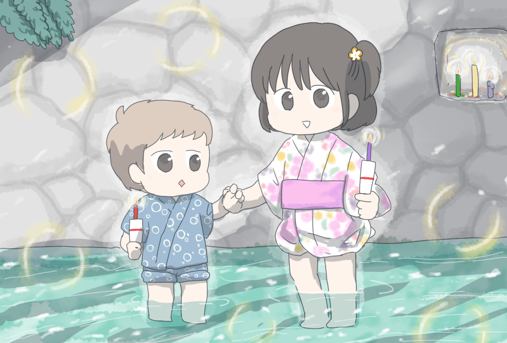 水の冷たさに夏の暑さもすっと引いて、五色の蝋燭の灯りが水面に揺れる様子はとても風流。